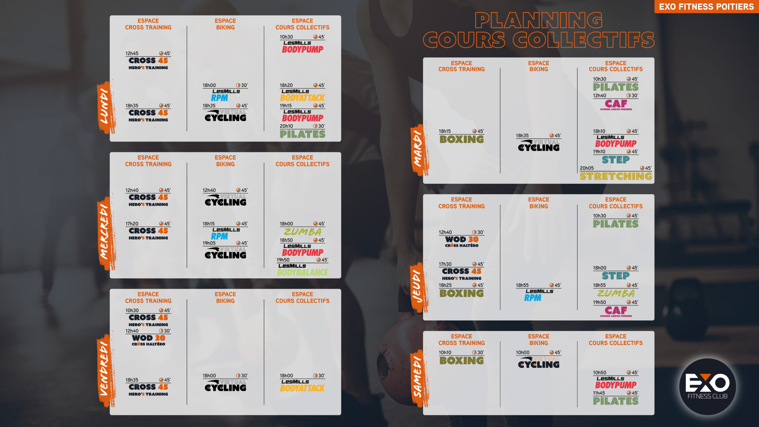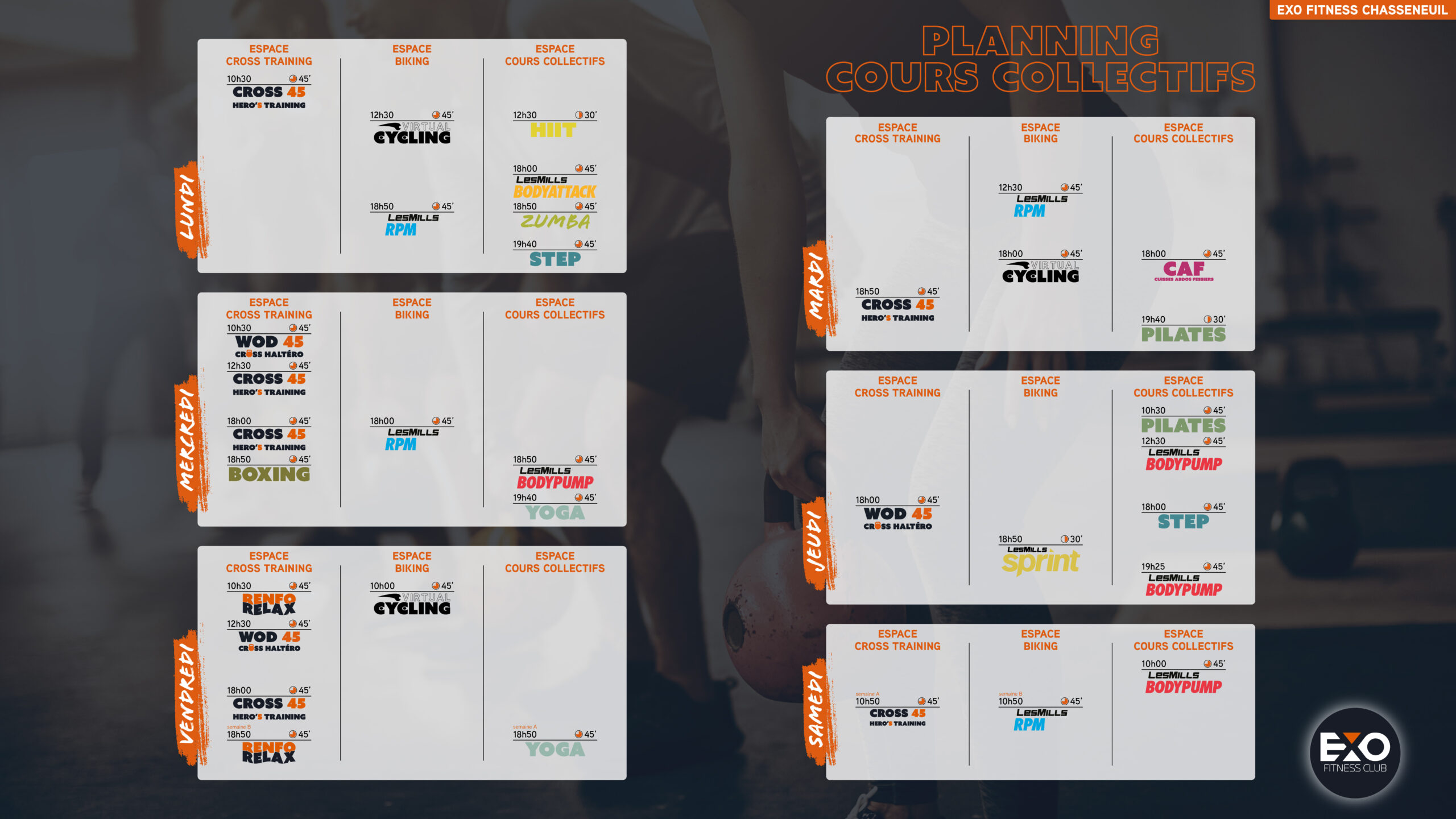 Que vous ayez envie de bouger, de vous défouler ou de progresser, nos cours collectifs sont faits pour vous ! Ambiance dynamique, coachs passionnés et planning varié : retrouvez l’envie de faire du sport avec le sourire.